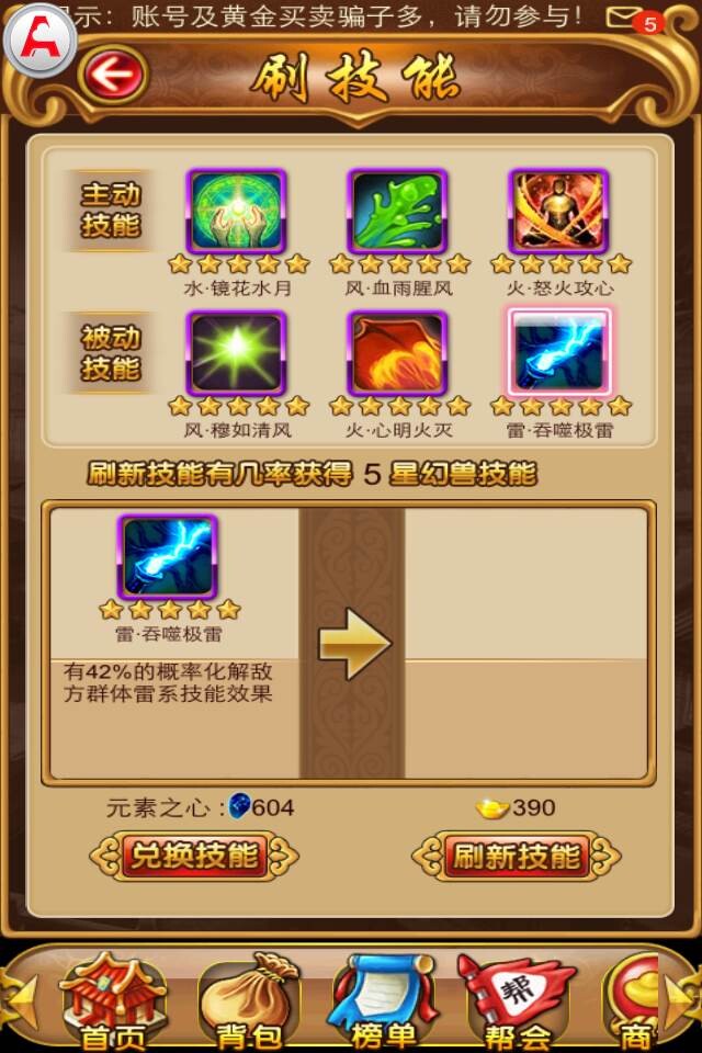 幻兽技能在游戏中占了不小的比重,很多人都拥有了5星幻兽,却没能拥有5星技能,无不遗憾,哀叹。